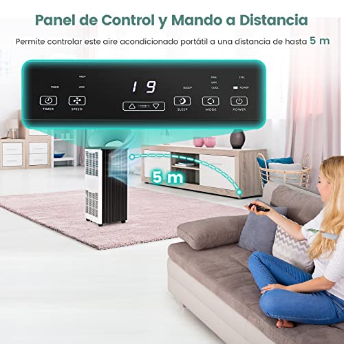 COSTWAY 4 en 1 Mini Aire Acondicionado 9000BTU 2,6kW, Deshumidificación, Refrigeración, Ventilación, Control WiFi/Remoto/Pantalla