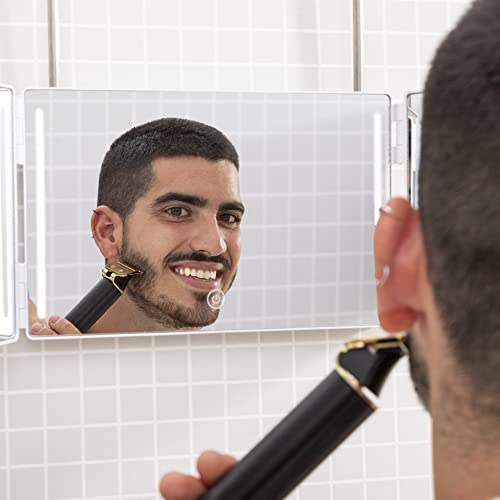 InnovaGoods - Espejo con visión 360, luz Led, Interruptor con Sensor táctil, diseño Plegable y Altura Adaptable